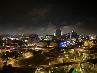 Once we go back to the hotel, we chilled for a half hour to change and then headed out as a squad to the Bass Pro Shops Pyramid. Apparently, though originally built for sports and entertainment purposes, they opened a giant Bass Pro Shop in 2015. On our elevator ride up (the tallest freestanding elevator in the world!) - they told a story that if (I'm paraphrasing here) they caught a giant fish out on their trip, they would open a Bass Pro in the Memphis pyramid. They did, obviously, and then I guess they both kissed the fish and opened the store. Sure - whatever floats your boat!